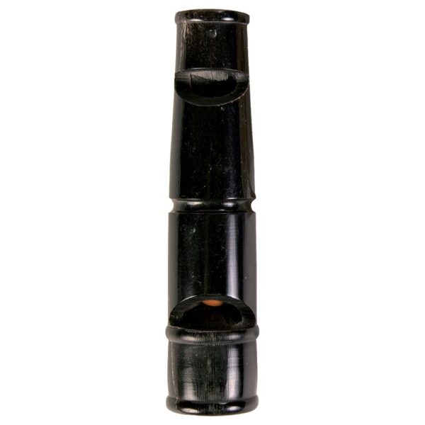 Modello in corno di bufalo a due toni, ovvero con fischio e trillo. Questo tipo di fischietto viene impiegato spesso nella caccia per l’addestramento a diversi comandi.